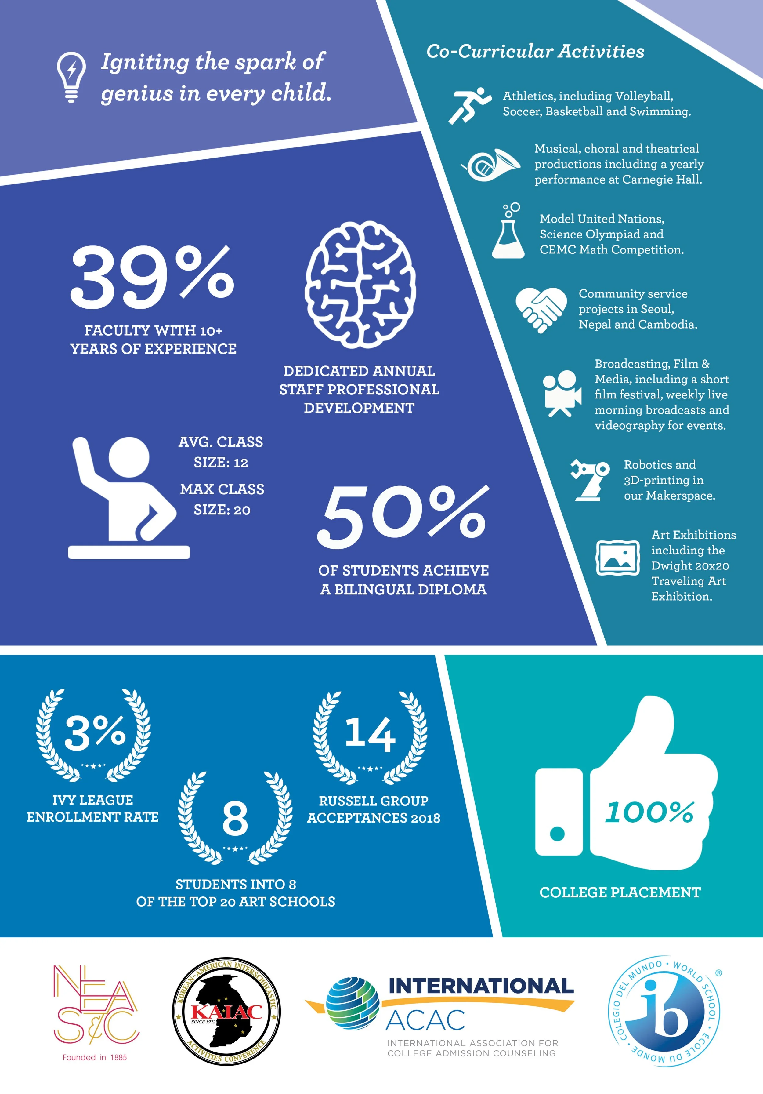 Dwight School Seoul is an IB World School in Seoul, South Korea serving students age 3 through grade 12. As the Director of Marketing & Communications, I implemented a complete website redesign with FinalSite, launched two bi-weekly digital newsletters and built several strong social media campaigns.