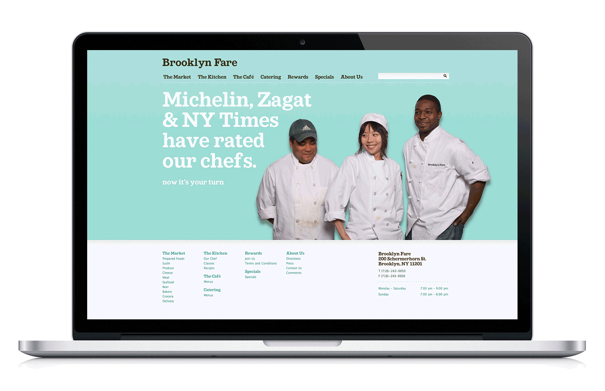 Gourmet grocery store and three Michelin-star restaurant Brooklyn Fare opened their doors with branding, a new website and a marketing campaign that included wild-postings, in-store signage, product design, newspaper ads and a fleet of delivery vans, all created by Mucca Design and me.